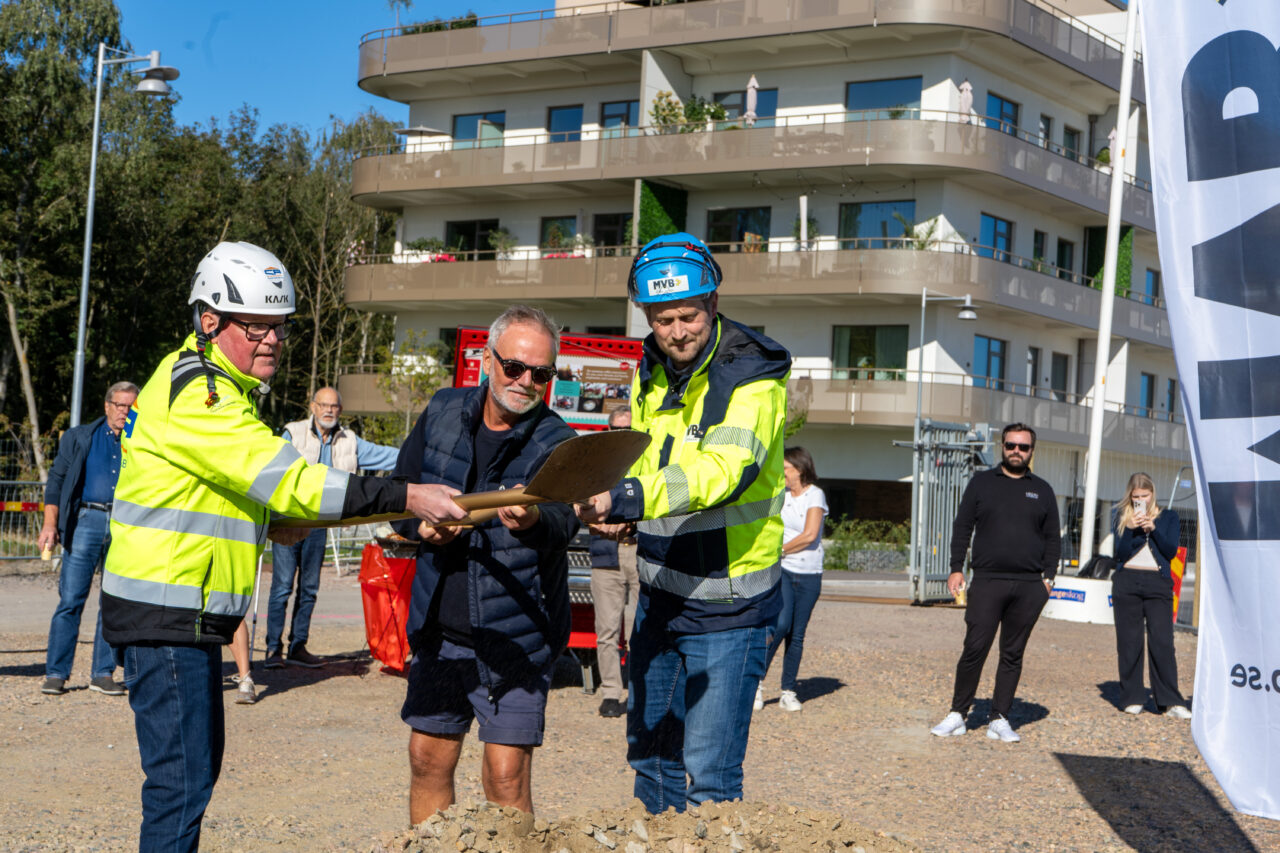 MVB och Folkhem och MVB har tillsammans tagit det första officiella spadtaget för Skogsvaktaren i Bagarmossen – ett flerbostadshus i massivträ, placerat alldeles intill Nackareservatet.
