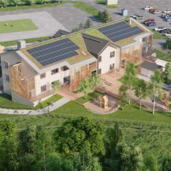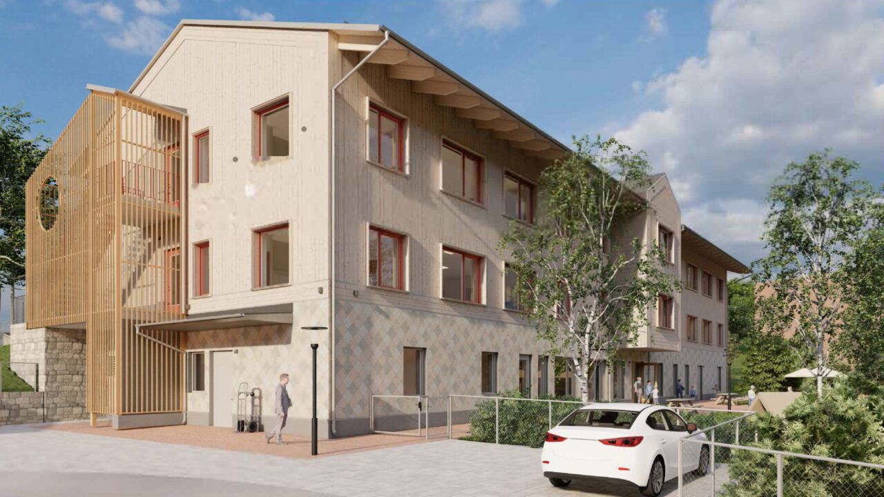 Fasaden kommer att bestå av underhållsfria klinkerplattor i kombination med thermowood. Taket får sedumbeläggning samt solpaneler.