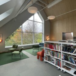 Den nya skolbyggnaden är uppdelad i fyra färgsektioner. Färgsättningen går igen i både fasad och interiör – tegel, fogar, golv, skåp och toaletter – vilket ger byggnaden en tydlig identitet och ett lekfullt uttryck. Utemiljön är gjord av MVB:s markavdelning.